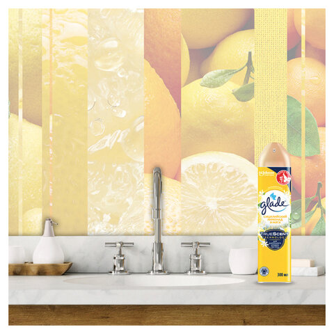 Насладитесь ярким ароматом с бодрящими нотами лимона, лимонной мелиссы и сочного персика, образующими насыщенную композицию. GLADE гарантирует безопасность и экспертную формулу своих аэрозолей!