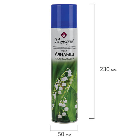 Освежитель воздуха МЕЛОДИЯ "Ландыш" быстро и эффективно устраняет неприятные запахи и освежает воздух в жилых и бытовых помещениях. Имеет приятный стойкий аромат, который надолго наполнит помещение свежестью.