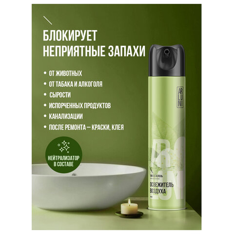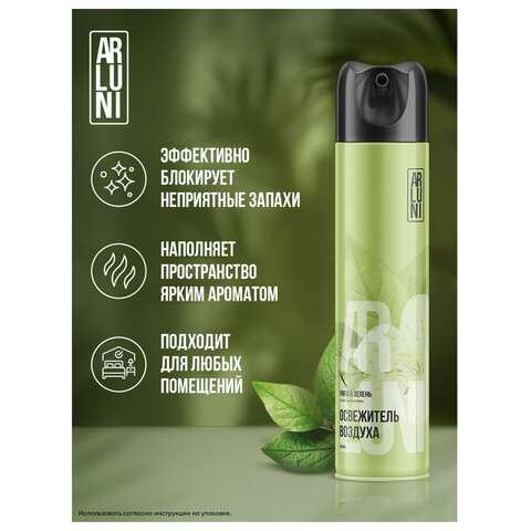 Освежитель воздуха аэрозольный 300мл ARLUNI "Липа и зелень", устранение неприятных за