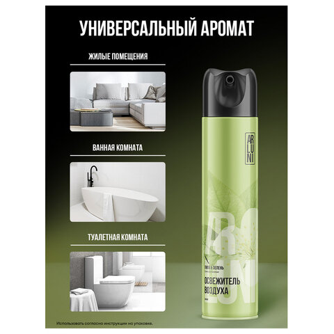 Освежитель воздуха аэрозольный 300мл ARLUNI "Липа и зелень" — это современное средство бытовой химии для создания приятной атмосферы в доме и устранения неприятных запахов.