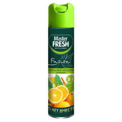 Освежитель воздуха аэрозольный 300мл MASTER FRESH FUSION 3в1 "Севильский мандарин" Нежный аромат надолго сохранит ощущение свежести и чистоты в Вашем доме.