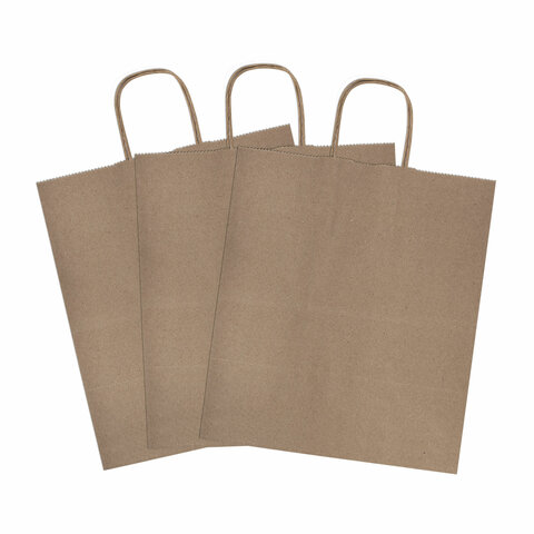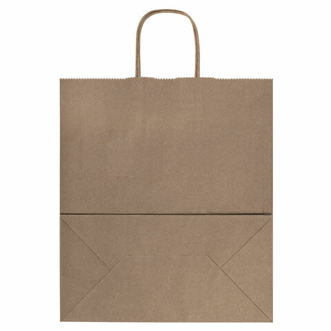 Крафт-пакет бумажный 24х14х28 см, КОМПЛЕКТ 50 шт., крученые ручки, плотность 90 г/м2, LAIMA ECO CRAFT, 609685