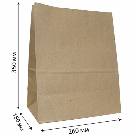 Крафт-пакет бумажный 26х15х35 см, плотность 90 г/м2, 110371