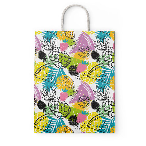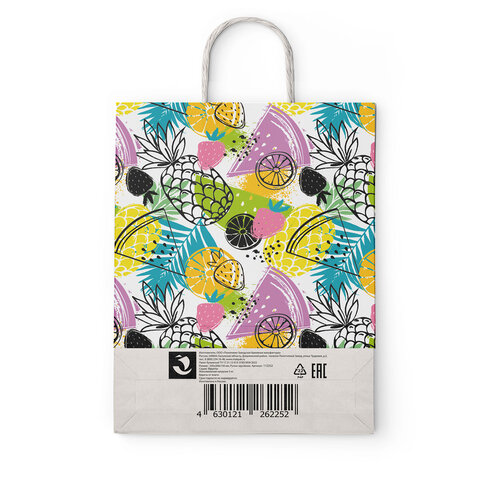 Крафт-пакет бумажный "Фрукты" 26х15х35 см, с кручеными ручками, плотность 100 г/м2, белый, 112252