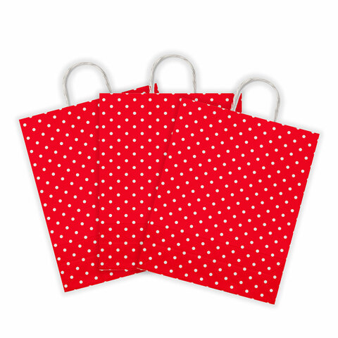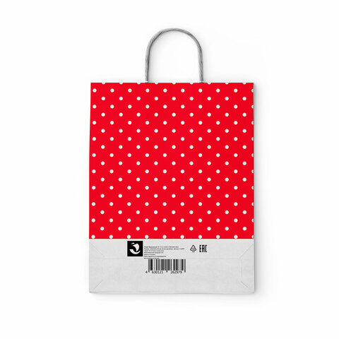 Крафт-пакет бумажный "Горох на красном" 22х12х25 см, с кручеными ручками, 100 г/м2, белый, 112979