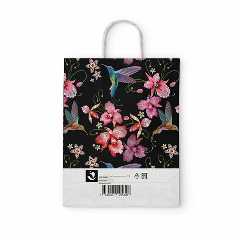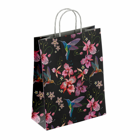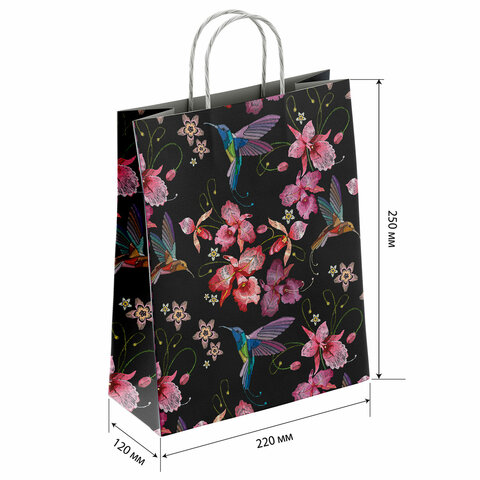 Крафт-пакет бумажный "Колибри" 22х12х25 см, с кручеными ручками, плотность 100 г/м2, белый, 115328