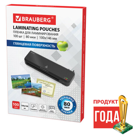 Пленки-заготовки для ламинирования МАЛОГО ФОРМАТА (100х146 мм), КОМПЛЕКТ 100 шт., 80 мкм, BRAUBERG, 531788
