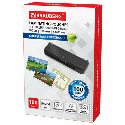 Пленки-заготовки для ламинирования МАЛОГО ФОРМАТА (54х86 мм), КОМПЛЕКТ 100 шт., 100 мкм, BRAUBERG, 530904