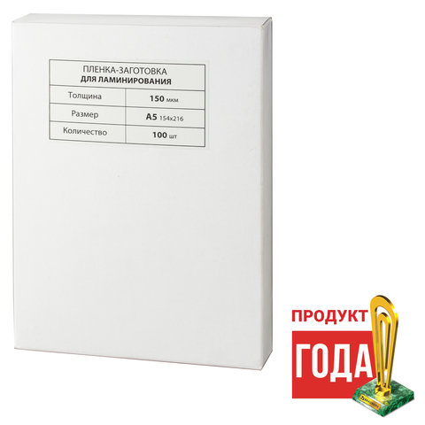 Пленки-заготовки для ламинирования МАЛОГО ФОРМАТА, А5, КОМПЛЕКТ 100 шт., 150 мкм, BRAUBERG, 531783