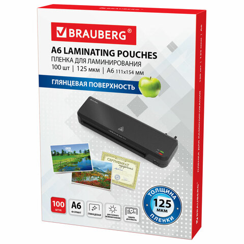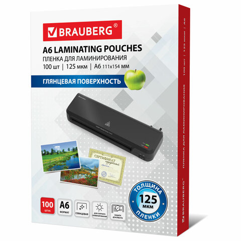 Пленки-заготовки для ламинирования МАЛОГО ФОРМАТА, А6, КОМПЛЕКТ 100 шт., 125 мкм, BRAUBERG, 530806