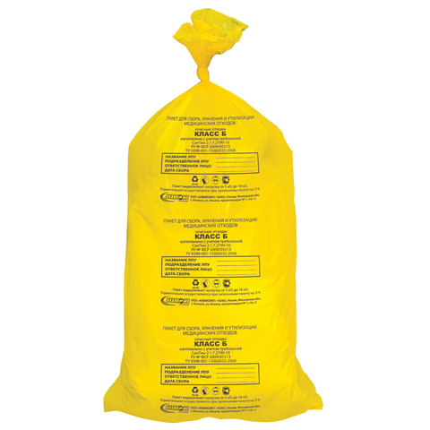 Мешки для мусора класса Б (желтого цвета) помогут обеспечить лечебно-профилактическим учреждениям безопасную утилизацию потенциально инфицированных отходов: оставшиеся после операций ткани и органы, мусор инфекционных отделений.