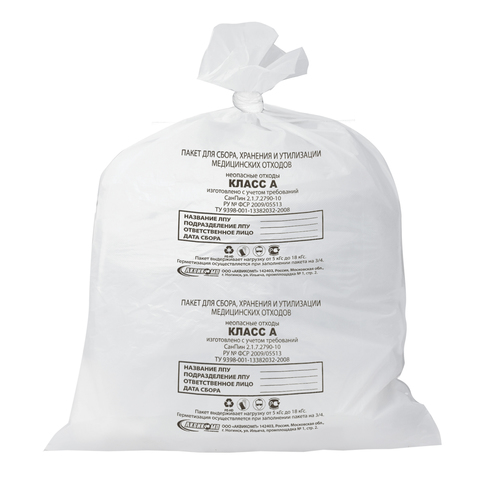 Мешки для мусора класса А (белого цвета) помогут обеспечить лечебно-профилактическим учреждениям безопасную утилизацию нетоксичных отходов – пищевых отходов, палатного мусора, инвентаря, деталей мебели.