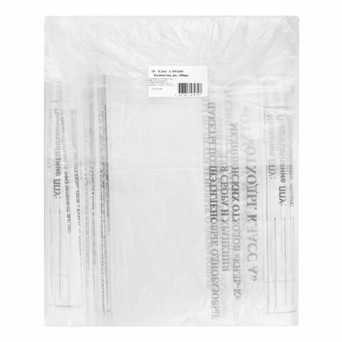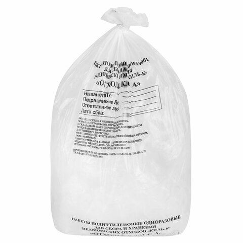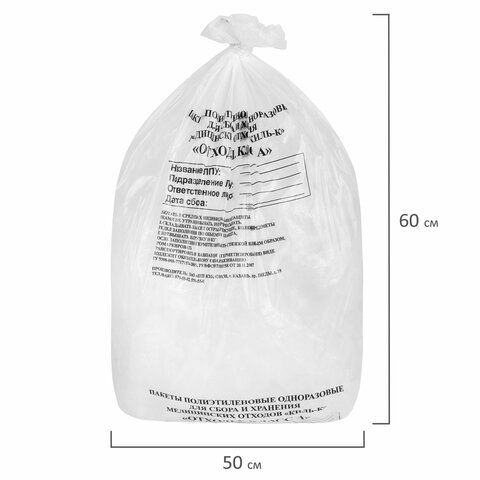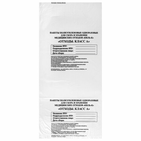 Пакеты для медицинских отходов КОМПЛЕКТ 100 шт., класс А (белые) 30 л, 50х60 см, 10 мкм, ПТП "Киль"