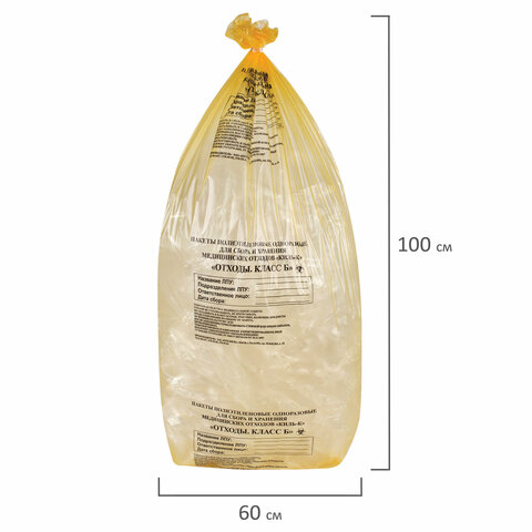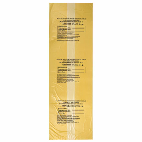Пакеты для медицинских отходов КОМПЛЕКТ 100 шт., класс Б (желтые) 100 л, 60х100 см, 12 мкм, ПТП "Киль"
