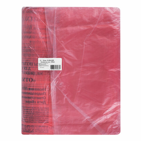 Пакеты для медицинских отходов КОМПЛЕКТ 100 шт., класс В (красные) 100 л, 60х100 см, 12 мкм, ПТП "Киль"