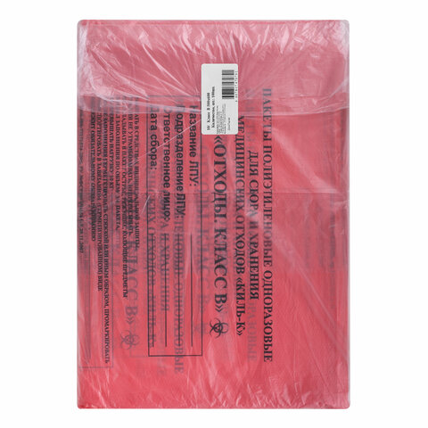 Пакеты для медицинских отходов КОМПЛЕКТ 100 шт., класс В (красные) 30 л, 50х60 см,10 мкм, ПТП "Киль"