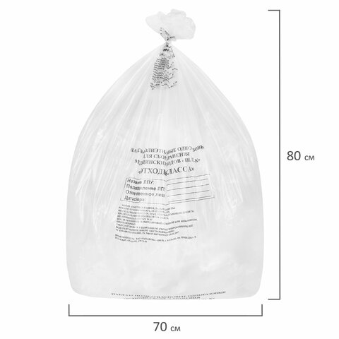 Пакеты для медицинских отходов КОМПЛЕКТ 50 шт., класс А (белые) 60 л, 70х80 см, 16 мкм, ПТП "Киль"