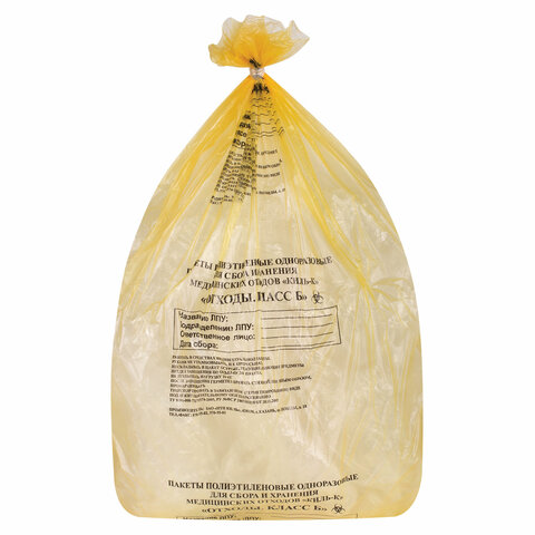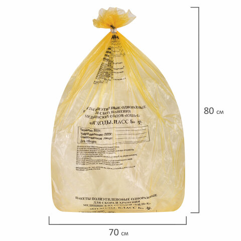 Пакеты для медицинских отходов КОМПЛЕКТ 50 шт., класс Б (желтые) 60 л, 70х80 см, 16 мкм, ПТП "Киль"