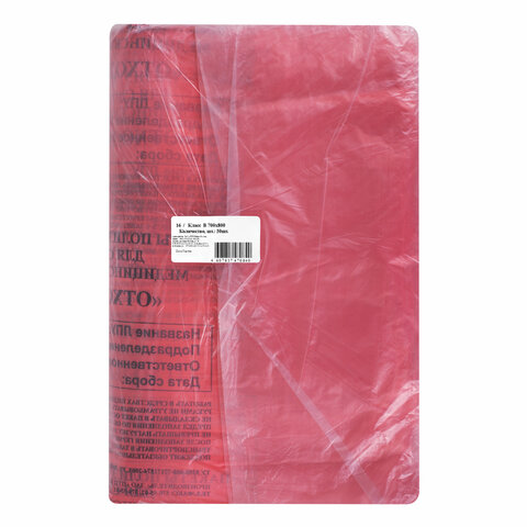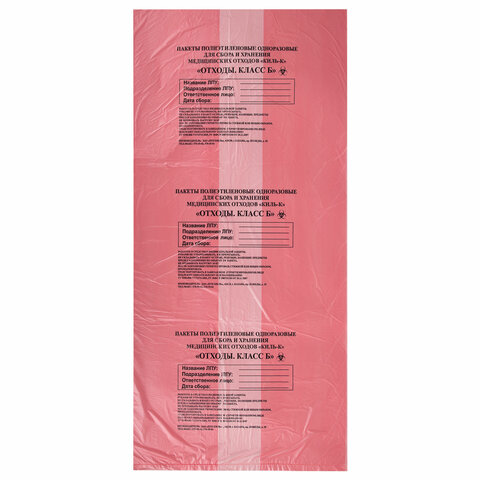 Пакеты для медицинских отходов КОМПЛЕКТ 50 шт., класс В (красные) 60 л, 70х80 см, 16 мкм, ПТП "Киль"