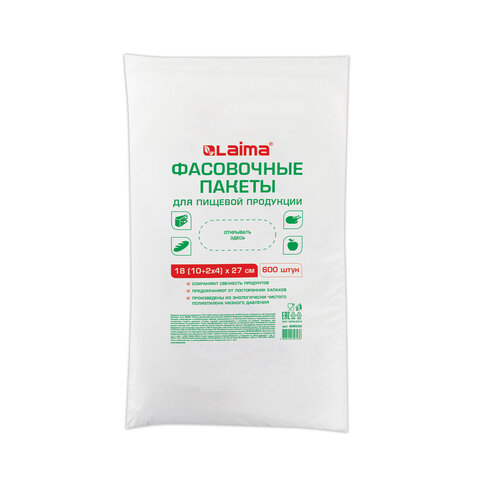 Пакеты фасовочные 18 (10 + 2 х 4) х 27 см КОМПЛЕКТ 600 шт., ПНД 9 мкм, евроупаковка, LAIMA, 608530