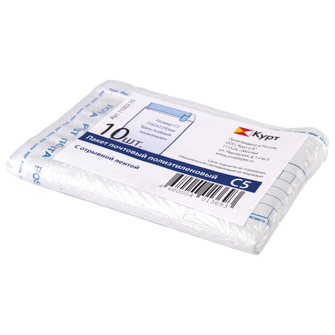 Конверт-пакеты ПОЛИЭТИЛЕН С5 (162х229 мм) до 150 л., отрывная лента, "Куда-Кому", КОМПЛЕКТ 10 шт., 11002.10