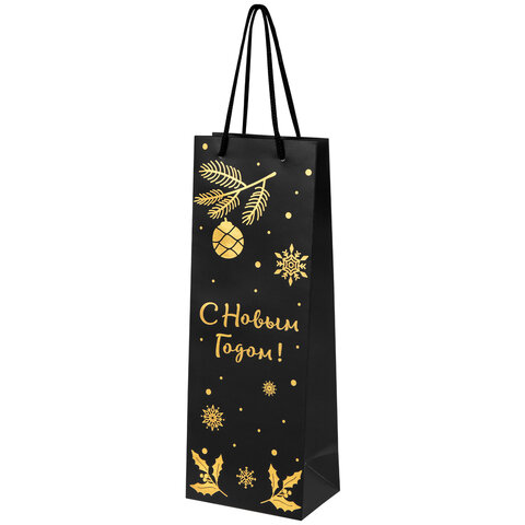 Подарочный новогодний пакет "Bottle #2" ЗОЛОТАЯ СКАЗКА – отличное решение для упаковки любого презента, которое позволит легко и со вкусом оформить выбранный подарок.