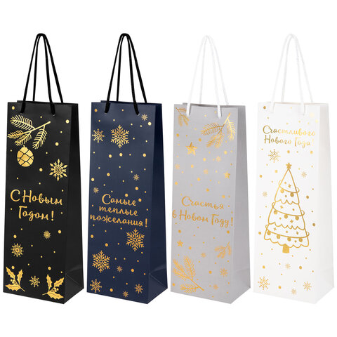 Пакет подарочный (1 шт.) новогодний, 13x9x36 см, "Bottle #2", голография, ассорти, ЗОЛОТАЯ СКАЗКА, 592429