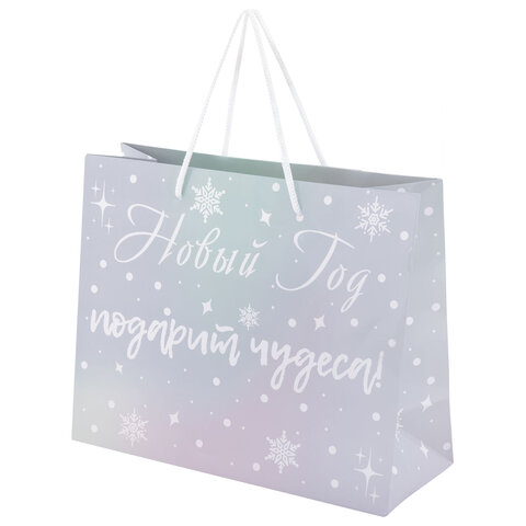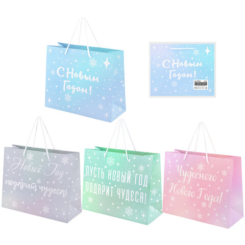 Пакет подарочный (1 шт.) новогодний, 26х13х32 см, "Сияние", ГОЛОГРАФИЯ, ассорти 4 дизайна, ЗОЛОТАЯ СКАЗКА, 592426