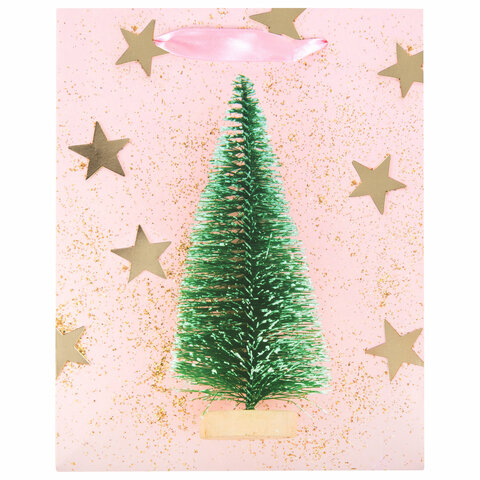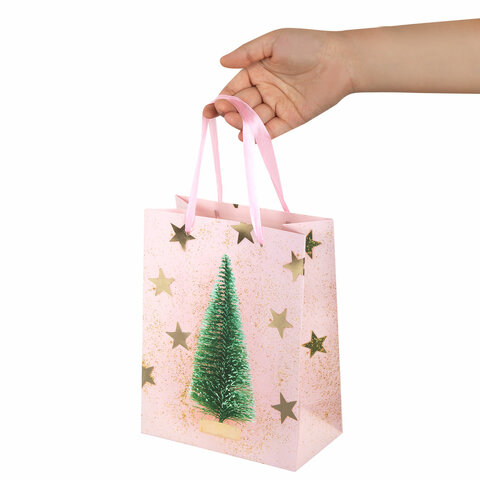 Пакет подарочный (1 штука) новогодний 18x10x23 см, ЗОЛОТАЯ СКАЗКА "Pink Ivory", фольга, 608234