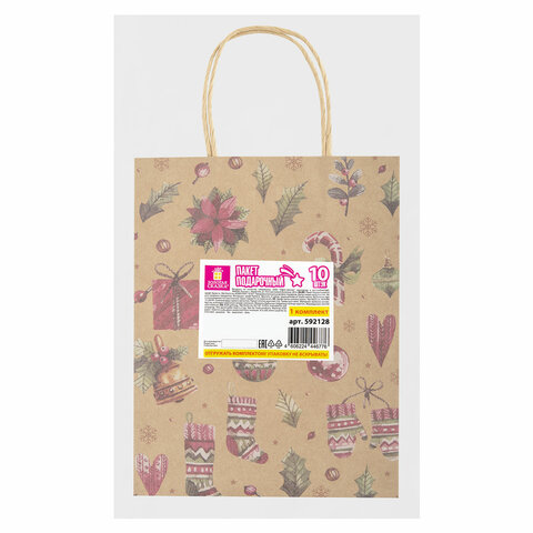 Подарочный новогодний пакет (КОМПЛЕКТ 10 штук) "Новогодние Штучки" ЗОЛОТАЯ СКАЗКА – отличное решение для упаковки любого презента, которое позволит легко и со вкусом оформить выбранный подарок.