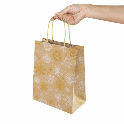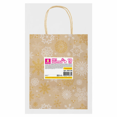 Подарочный новогодний пакет (КОМПЛЕКТ 10 штук) "Снежинки" ЗОЛОТАЯ СКАЗКА – отличное решение для упаковки любого презента, которое позволит легко и со вкусом оформить выбранный подарок.