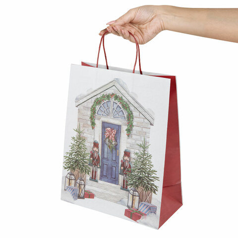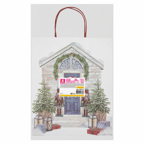 Пакет подарочный КОМПЛЕКТ 10 штук новогодний 26x13x32 см, "Новогодняя Сказка", ЗОЛОТАЯ СКАЗКА, 592131