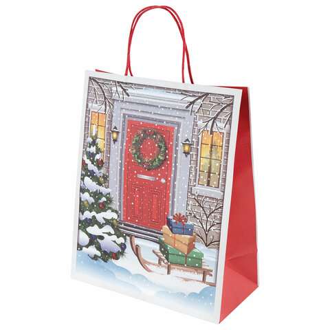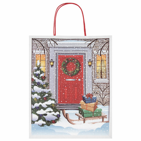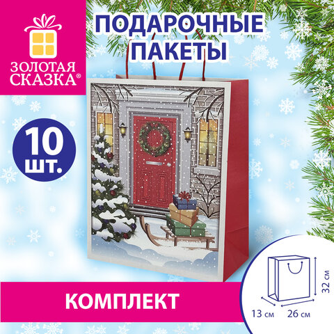 Пакет подарочный КОМПЛЕКТ 10 штук новогодний 26x13x32 см, "Сочельник", ЗОЛОТАЯ СКАЗКА, 592130