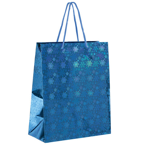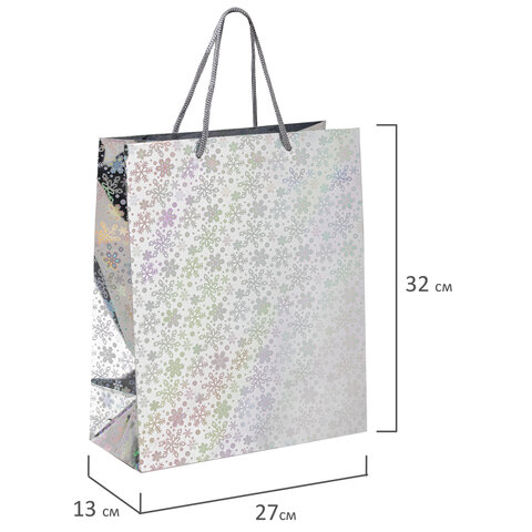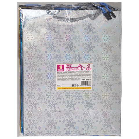 Пакет подарочный новогодний НАБОР 4 шт. 26x13x32 см (L), ГОЛОГРАФИЯ 3 цвета ЗОЛОТАЯ СКАЗКА, 609614