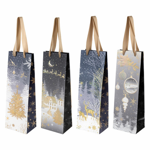 Пакет подарочный под бутылку (1 штука) новогодний 12x9x36 см, "Bottle", ассорти, ЗОЛОТАЯ СКАЗКА, 592134