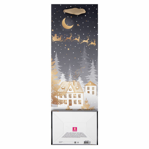 Подарочный новогодний пакет под бутылку "Bottle" ЗОЛОТАЯ СКАЗКА – отличное решение для упаковки любого презента, которое позволит легко и со вкусом оформить выбранный подарок.