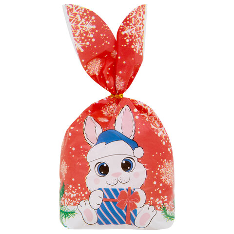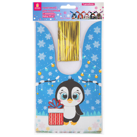 Пакетик подарочный НАБОР 35 штук, новогодний, 13,8х23 см, с зажимами, полиэтилен, ЗОЛОТАЯ СКАЗКА, 592423