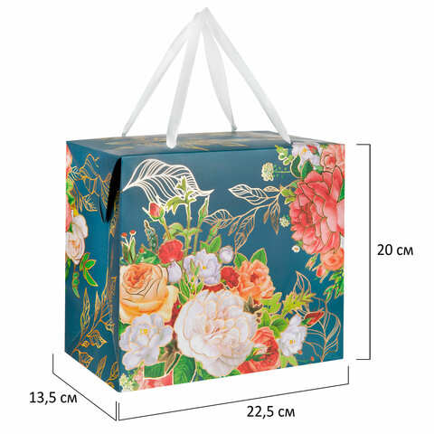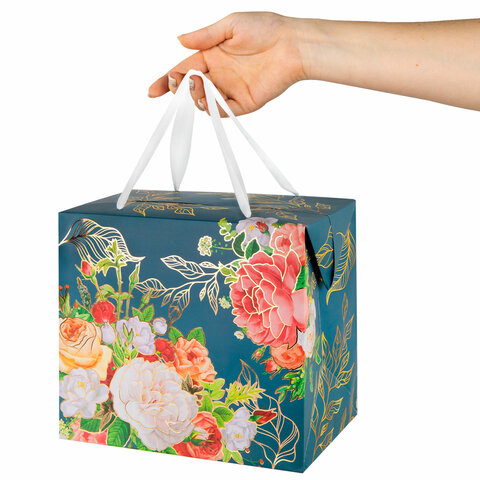 Пакет-коробка подарочный (1 штука) ассорти "Цветы", 22,5х13,5х20 см, тиснение фольгой, ламинация 90077, 90078, 90077