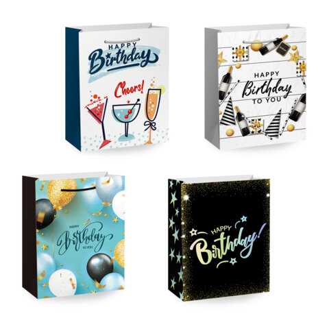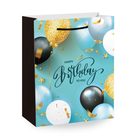 Пакет подарочный (1 штука) 18х10х23 см (M), "Happy Birthday", ассорти, глиттер, фольга, ЗОЛОТАЯ СКАЗКА, 700806