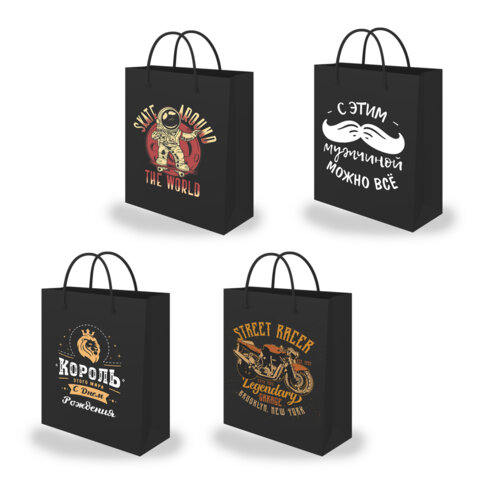 Пакет подарочный (1 штука) 18х10х23 см (M), "Man Collection", ассорти, крафт, ЗОЛОТАЯ СКАЗКА, 700804
