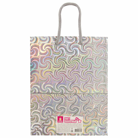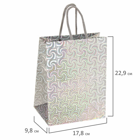 Пакет подарочный (1 штука) 18x10x23 см, ЗОЛОТАЯ СКАЗКА голография, ассорти 4 цвета, 606606