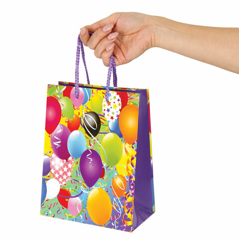 Пакет подарочный (1 штука) 18x10x23 см, ЗОЛОТАЯ СКАЗКА "Воздушные шары", ламинированный, 606590