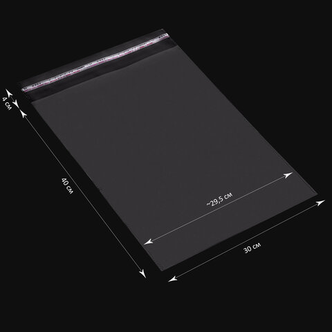 Пакет БОПП с клеевым клапаном, КОМПЛЕКТ 100 шт., 30х40+4 см, толщина 30 мкм, с усиленным швом