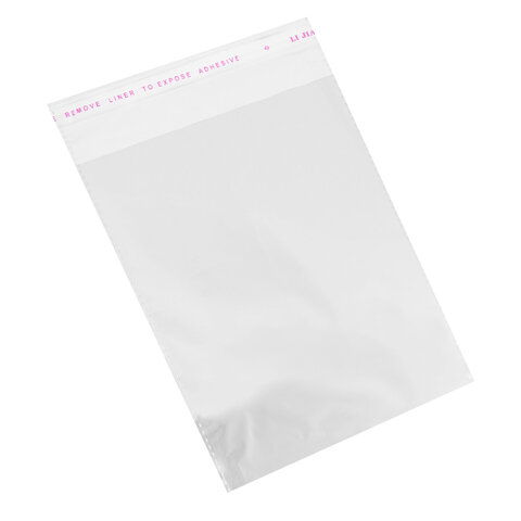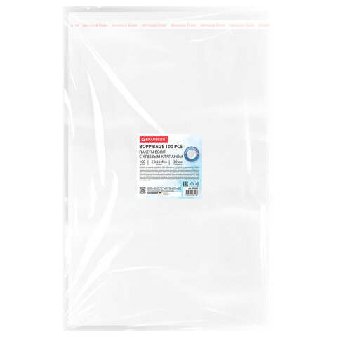 Пакеты БОПП с клеевым клапаном, КОМПЛЕКТ 100 штук, 25х35 + 4 см, 30 мкм, с усиленным швом, BRAUBERG, 700409