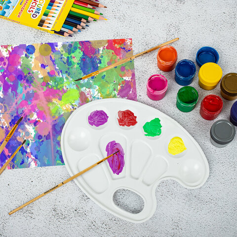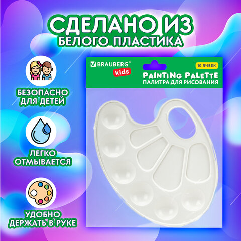 Легкая, компактная и удобная палитра для рисования BRAUBERG KIDS предназначена для смешивания красок и получения новых тонов.