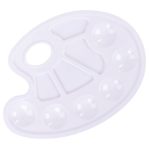 Палитра для рисования ПИФАГОР белая, овальная, 6 ячеек для красок и 4 ячейки для смешивания, 227805