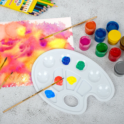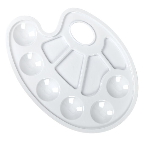 Палитра для рисования ЮНЛАНДИЯ белая, овальная, 6 ячеек для красок и 4 для смешивания, европодвес, 227806