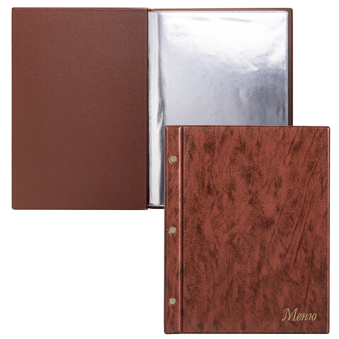 Папка "Меню" на трех винтах, с 10 файлами, 220х320 мм, коричневая, "ДПС", 2273.М-104