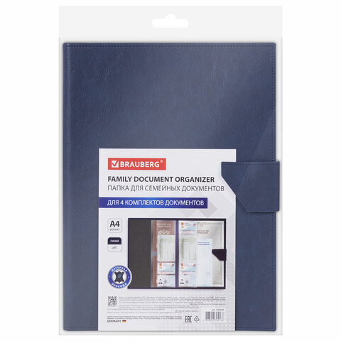 Папка-органайзер для семейных документов BRAUBERG синего цвета. Незаменима для хранения самых важных документов в одном месте.