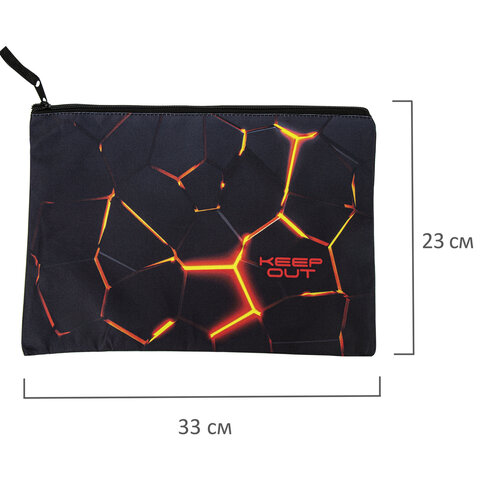 Папка для тетрадей BRAUBERG А4, 1 отделение, полиэстер, на молнии, с ручкой, "Keep out", 270942